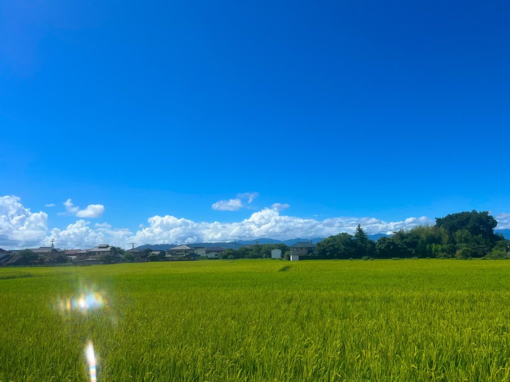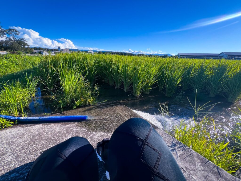 お米の稲が青々と育っている時期でお水の音だけで涼を感じます。